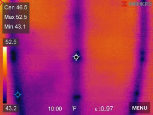 In the beginning of this piece, I mentioned that I regret not installing the CI on my home. This thermal image of my family room shows why. I improved the cavity insulation from R-7 (the original insulation installed in the early 1950’s) to R-15, more than doubling the R-value. On top of that, I installed a smart vapor retarder which is well air sealed. This work did improve the overall performance of the home, but the structure still isn’t as comfortable as I was hoping during cold weather. The thermal image (the darker areas on the studs are the fasteners used to secure the drywall) was taken with a difference between indoor and outdoor temperatures of 90°F, the outdoor temp was -15°F. Cold, but it can be worse in my area. The average temperature of this west facing wall was in the low 50’s, cold enough to feel the heat leaving your body and moving to the cooler wall, that comfort thing. That extra R-10 sure would be nice…
