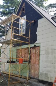 Anytime cladding is removed from a home, we get to learn of any changes made over the years to the original structure along with any construction errors. Water finding pathways through the cladding, around any water resistive barrier and into the wall are common in older homes. Sometimes, the damage is limited to discoloration and staining on the sheathing or inside walls. Other times the rot is bad enough that sheathing, and even framing might need to be replaced. Repairs need to be made before any other work can be done.